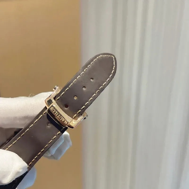Closure: 18k pink gold and 18k white gold Patek Philippe double folding buckle