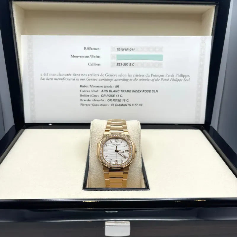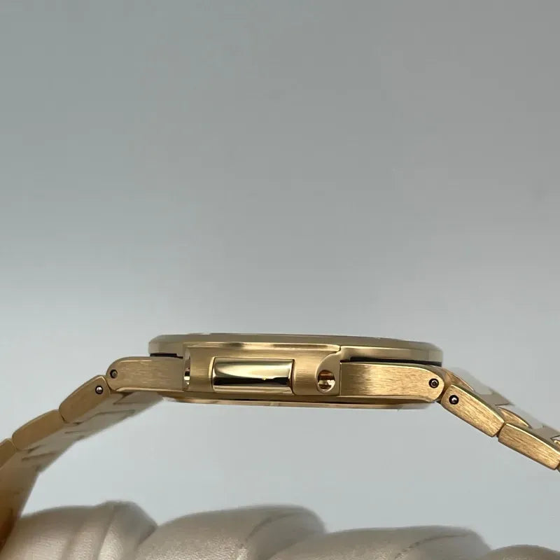 With its rounded octagonal bezel, its ingeniously unique porthole-structured case and its dial embossed with horizontal stripes, the Nautilus has perfectly exemplified the elegance of a sports watch since its introduction in 1976.