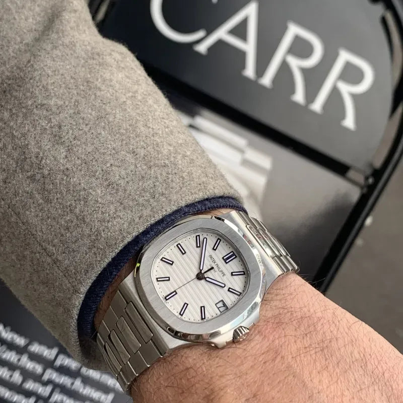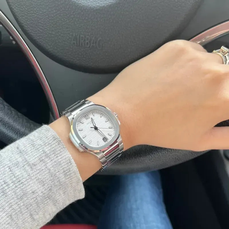 The Nautilus Ladies Self-Winding Watch is made of stainless steel, expressing casual elegance and ultimate femininity, with a choice of two new dial colors: silver white and smoke gray.