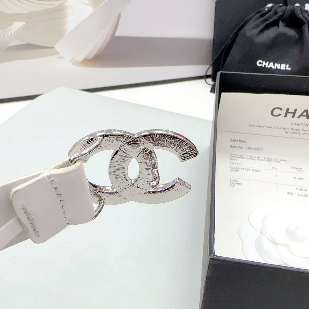 Cc 30Mm Belt In White Calfskin Metal Hardware