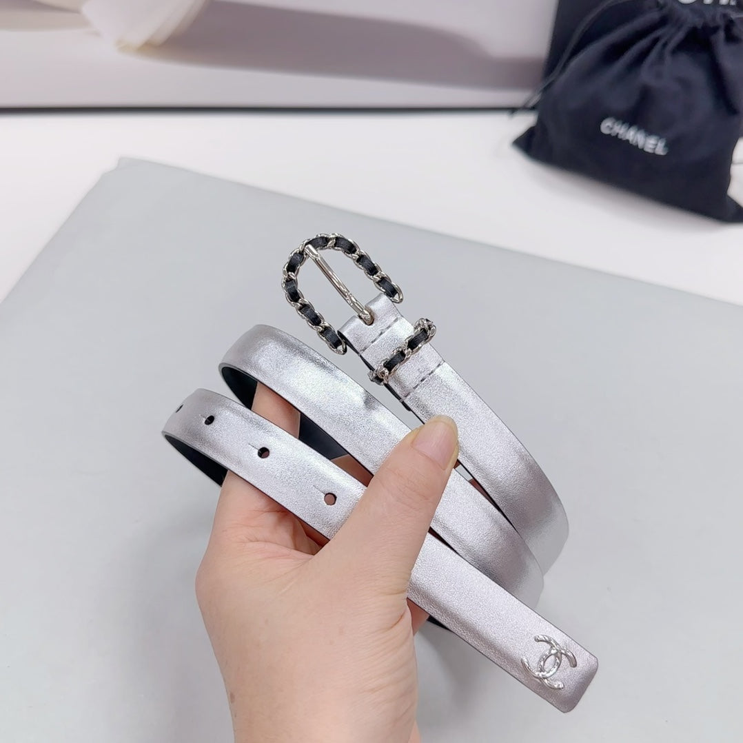 Cc Belt 20 Mm In Silver Mix Black Calfskin Silver Hardware
