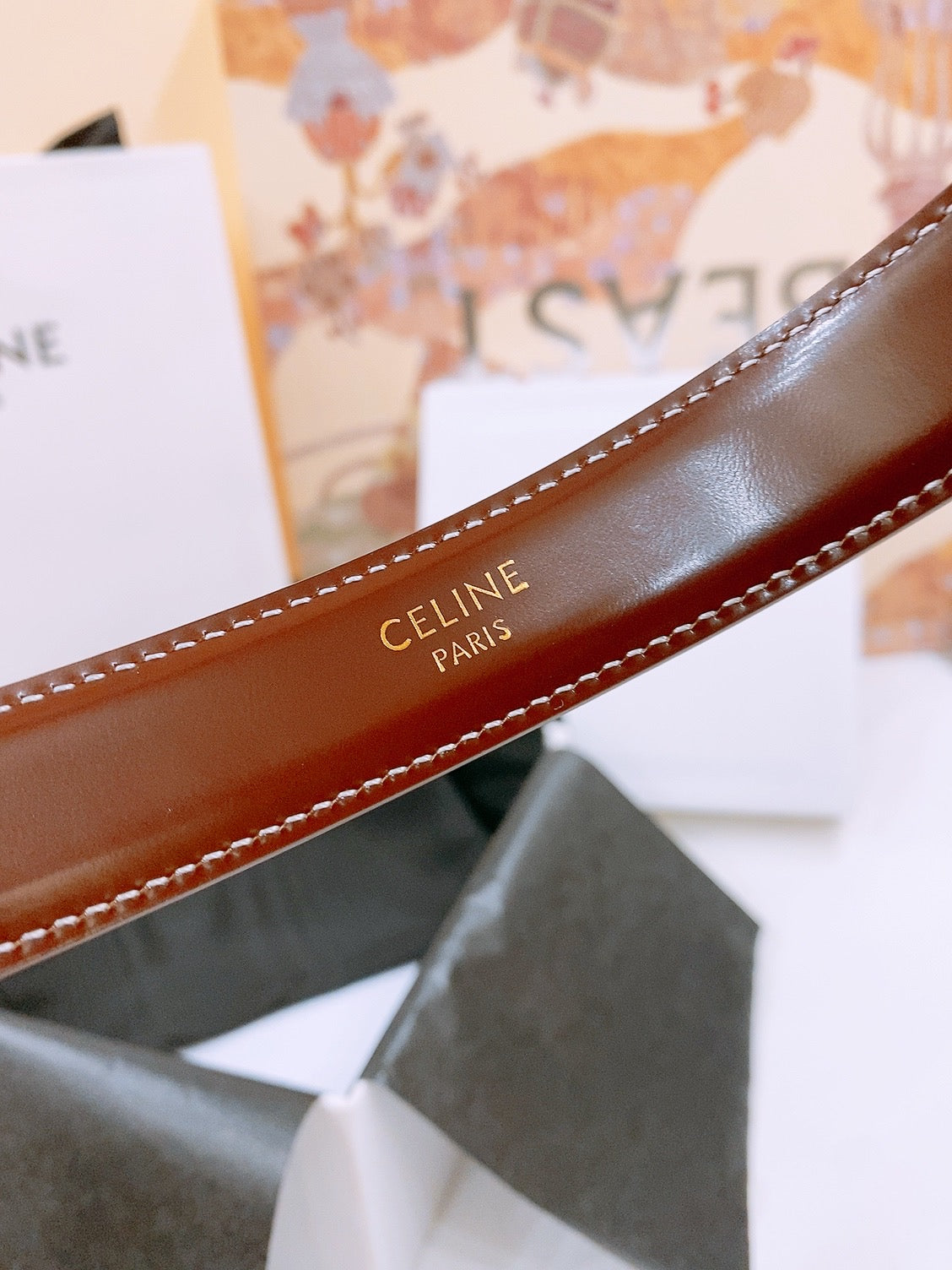 Celine 25S Belt 25Mm With Arc De Triomphe Buckle In Burnt Umber 571501