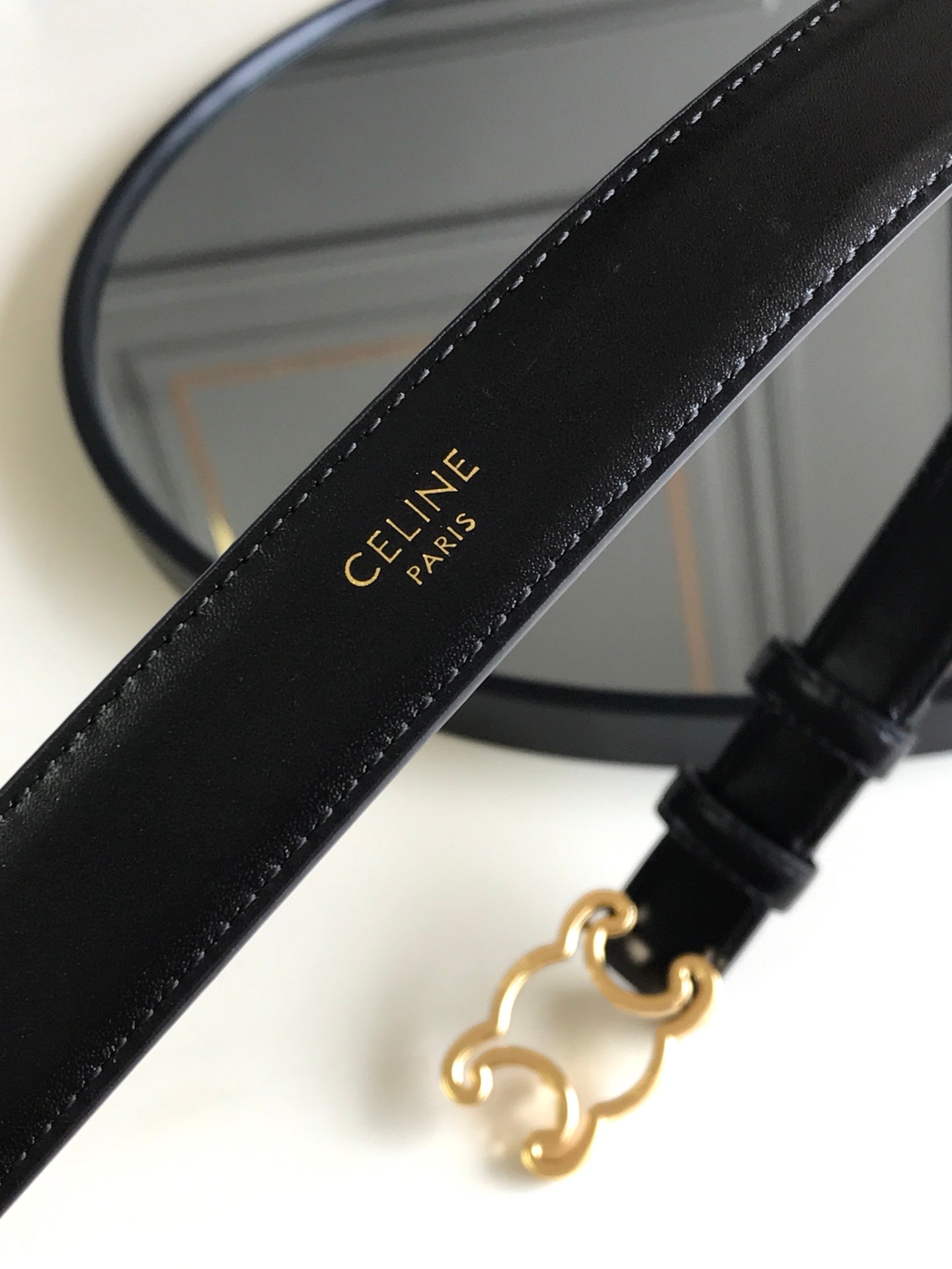 Celine 25S Belt Triomphe 25Mm In Black Glossy Calfskin 559675