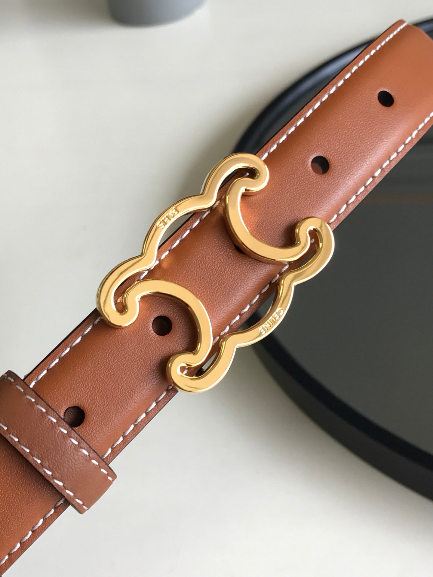 Celine 25S Belt Triomphe 25Mm In Brown Calfskin 559676