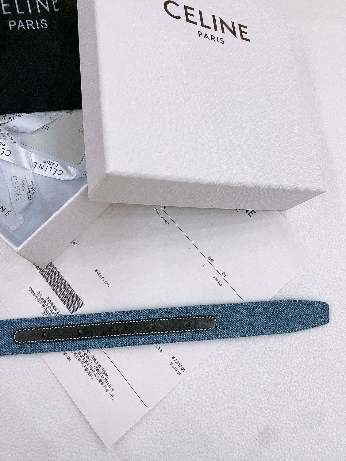 Celine 25S Belt Triomphe Taurillon 25Mm In Black Calfskin And Denim 558344