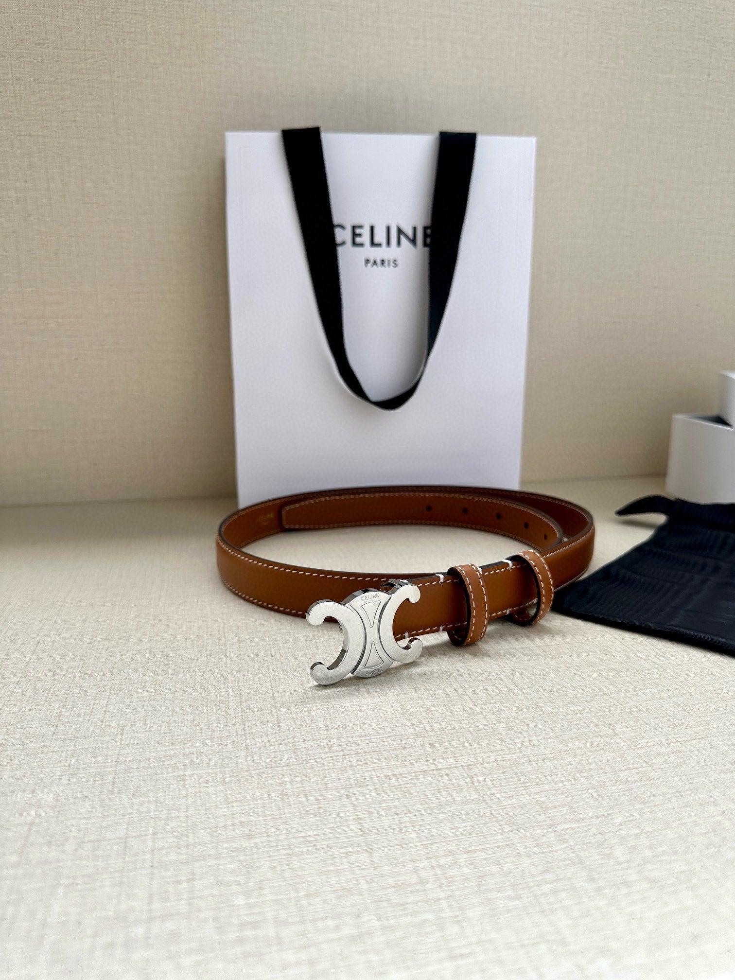 Celine 25S Belt Triomphe Taurillon 25Mm In Caramel Calfskin 557501