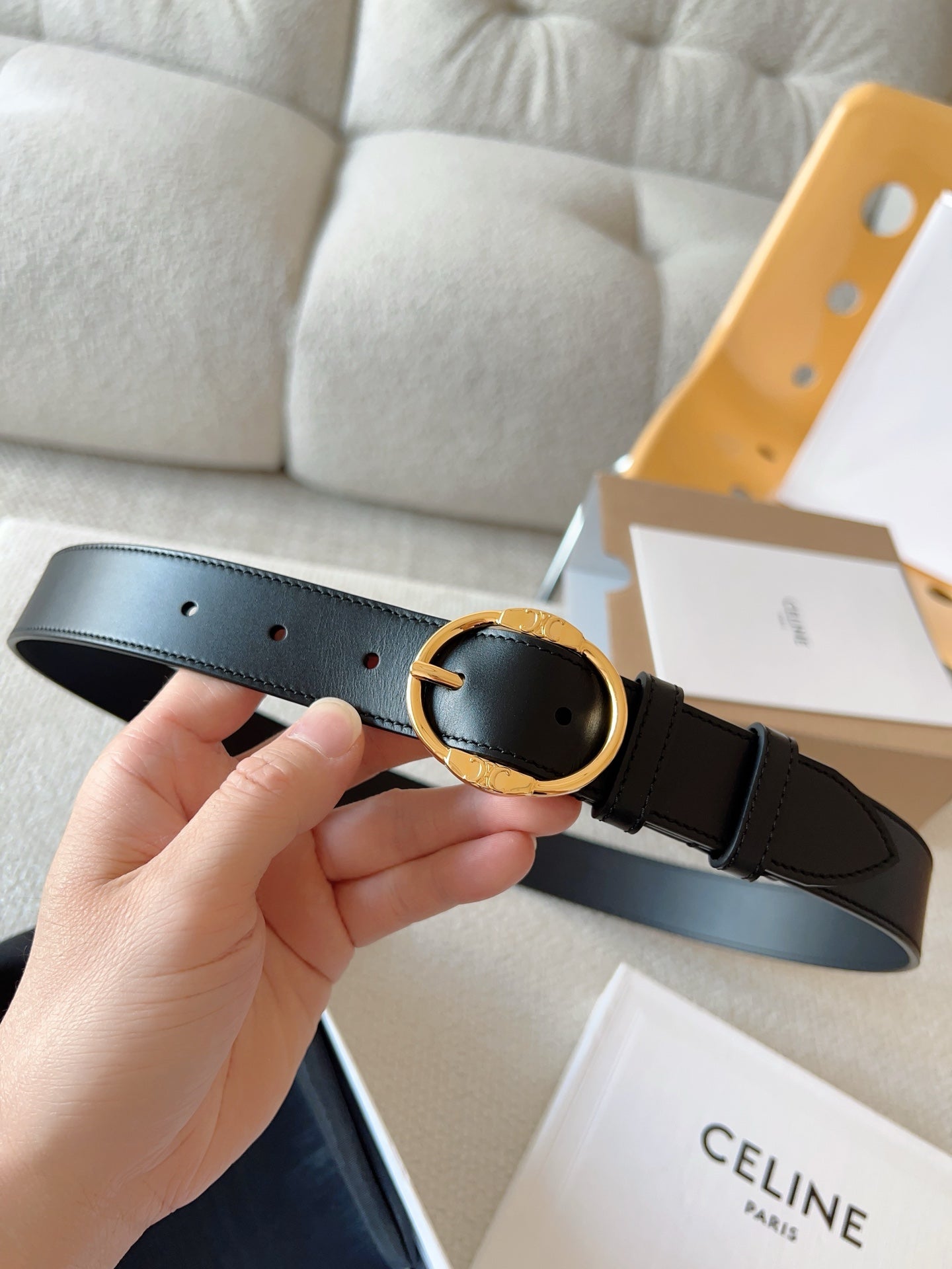 Celine 25S Small 30Mm Western Belt In Black Calfskin 566636