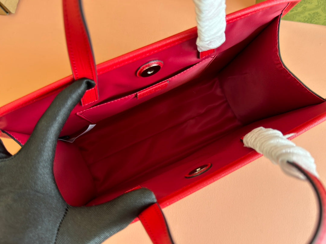 Gucci Bunny Print Tote Bag Red Beige Canvas 231228