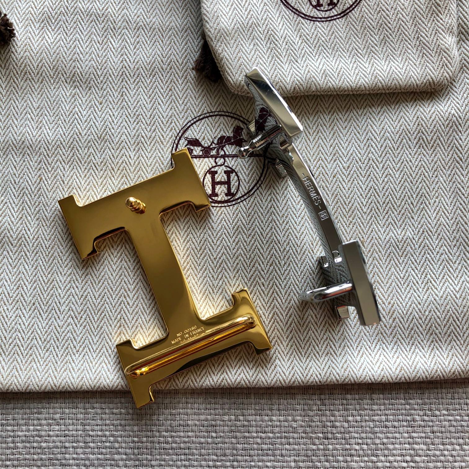 Hm Belt Buckle & Reversible Black Leather Strap 38Mm Gold Hardware