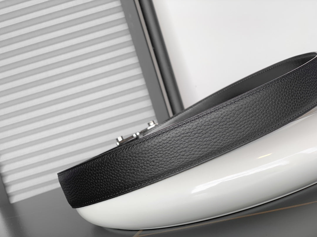 Hm Reversible Black Leather Strap 32 Mm Silver Hardware