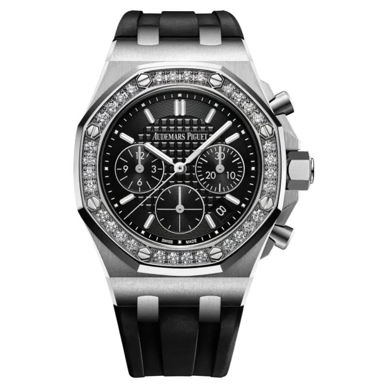 white gold luminescent applied hour-markers and Royal Oak hands.