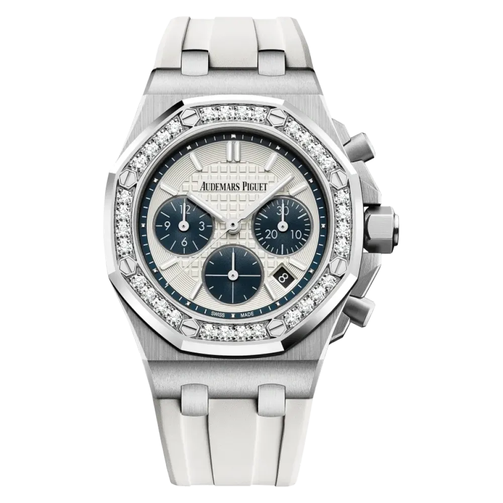 white gold luminescent applied hour-markers and Royal Oak hands.