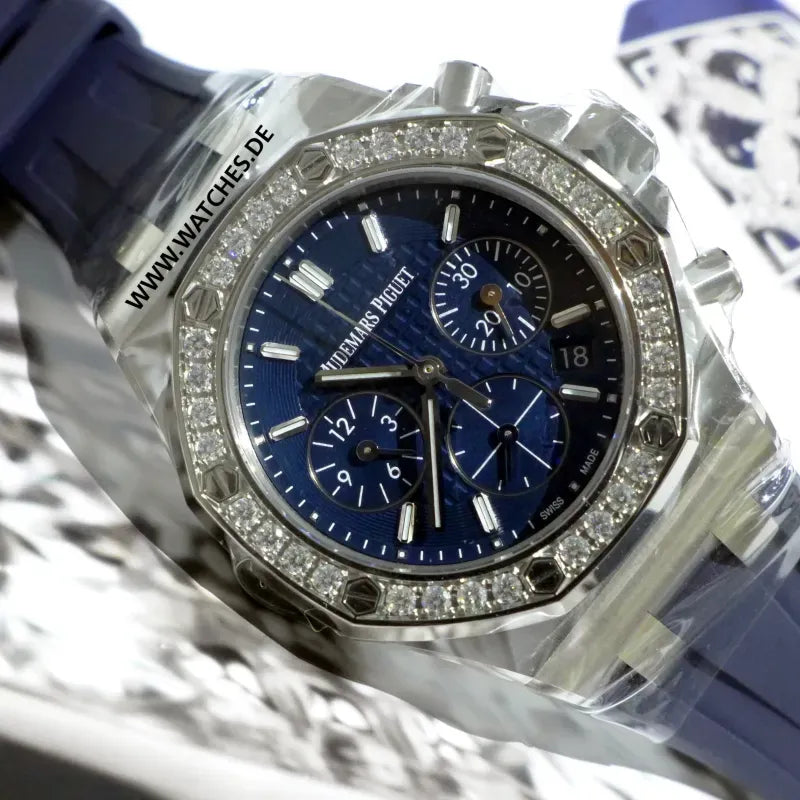 white gold luminescent applied hour-markers and Royal Oak hands.