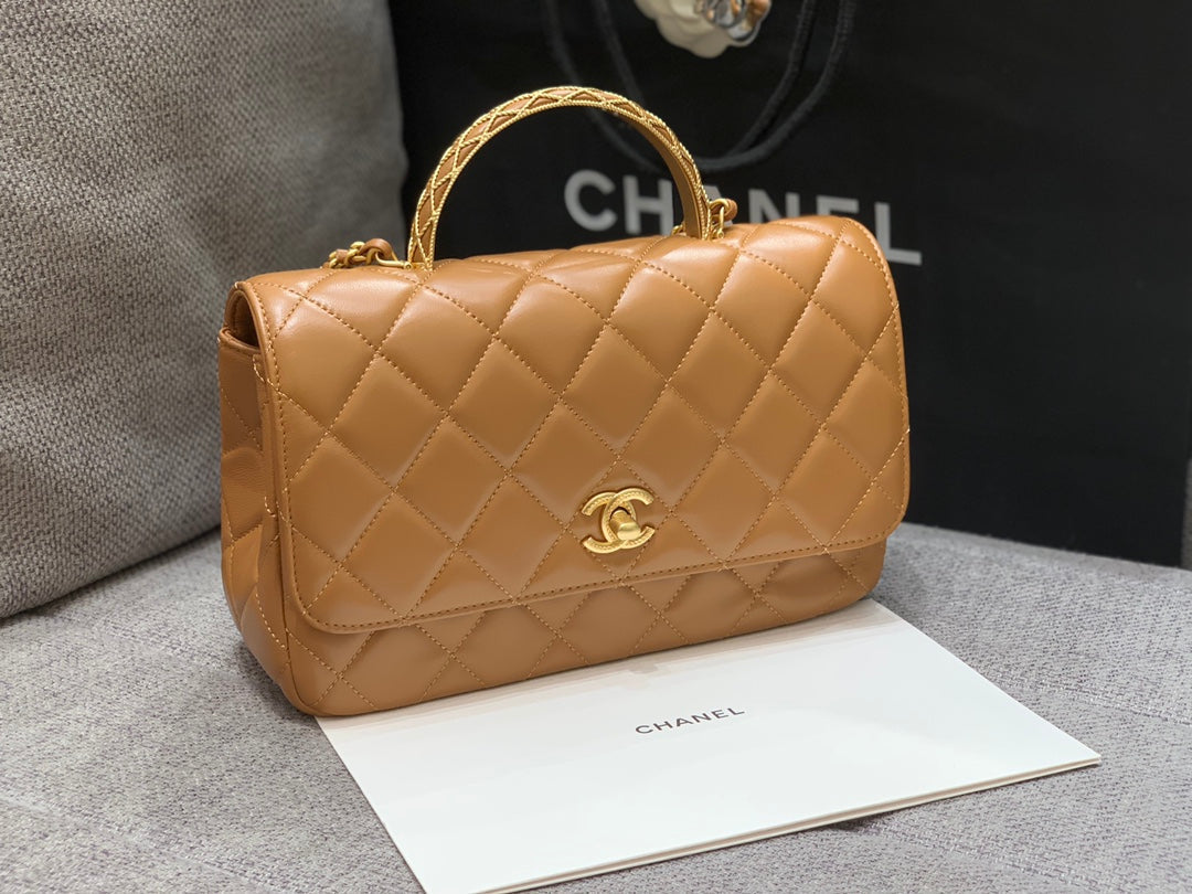 - Color: Brown leather, Gold hardware