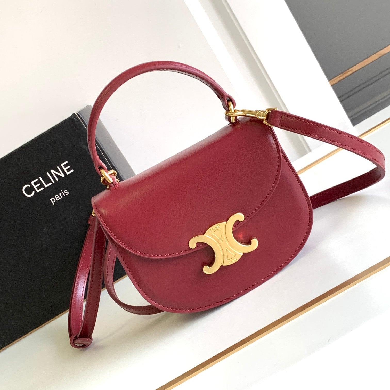 - Color: Red, Gold hardware