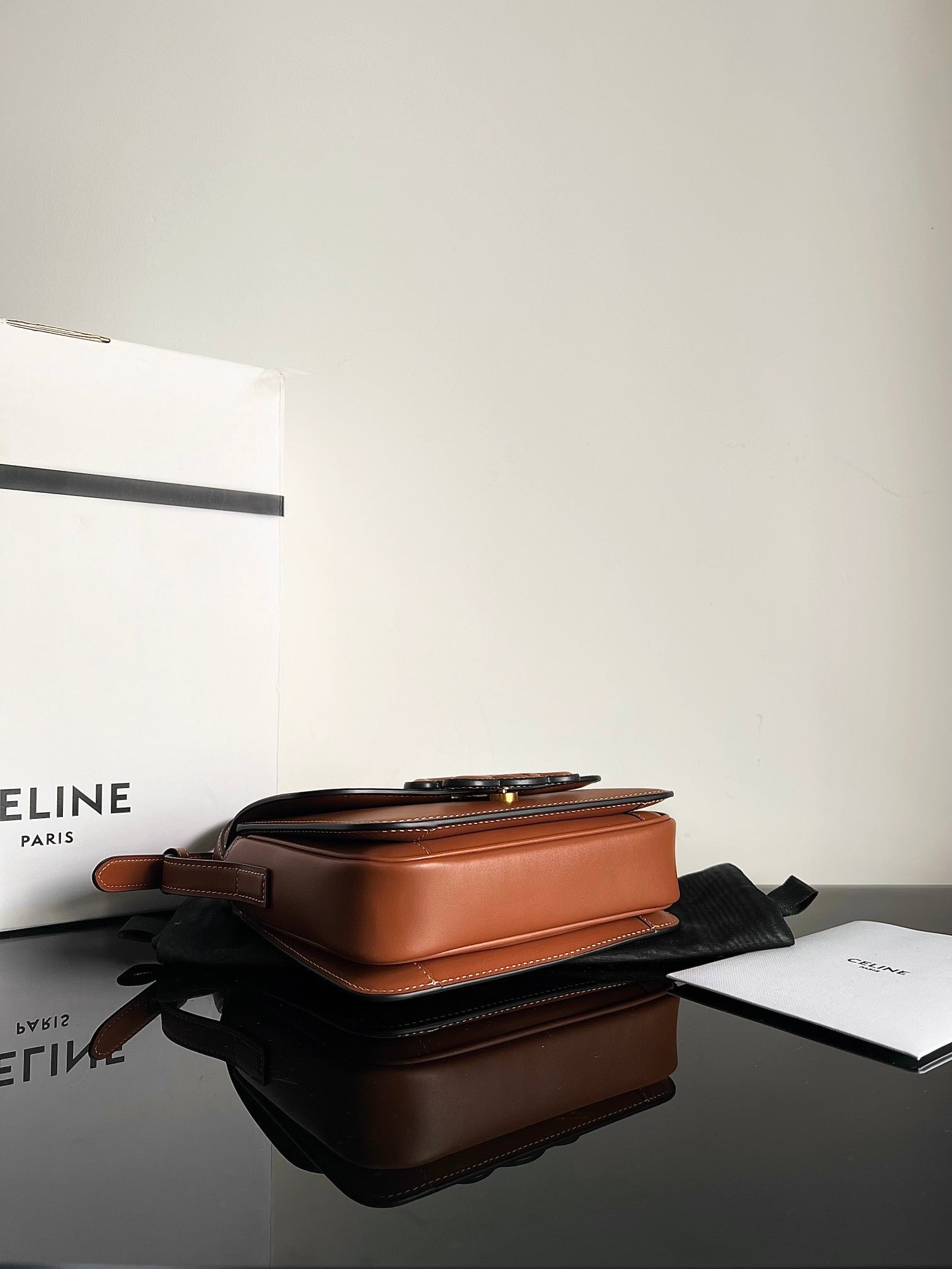 - Color: Brown leather, Gold hardware