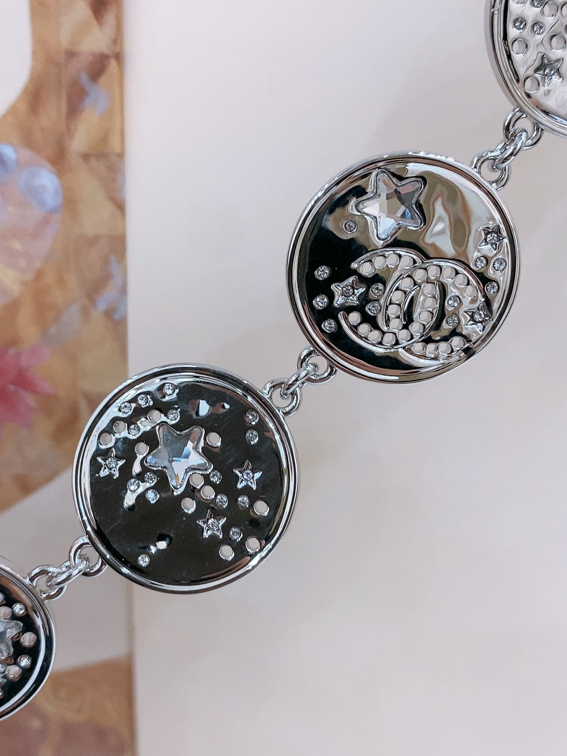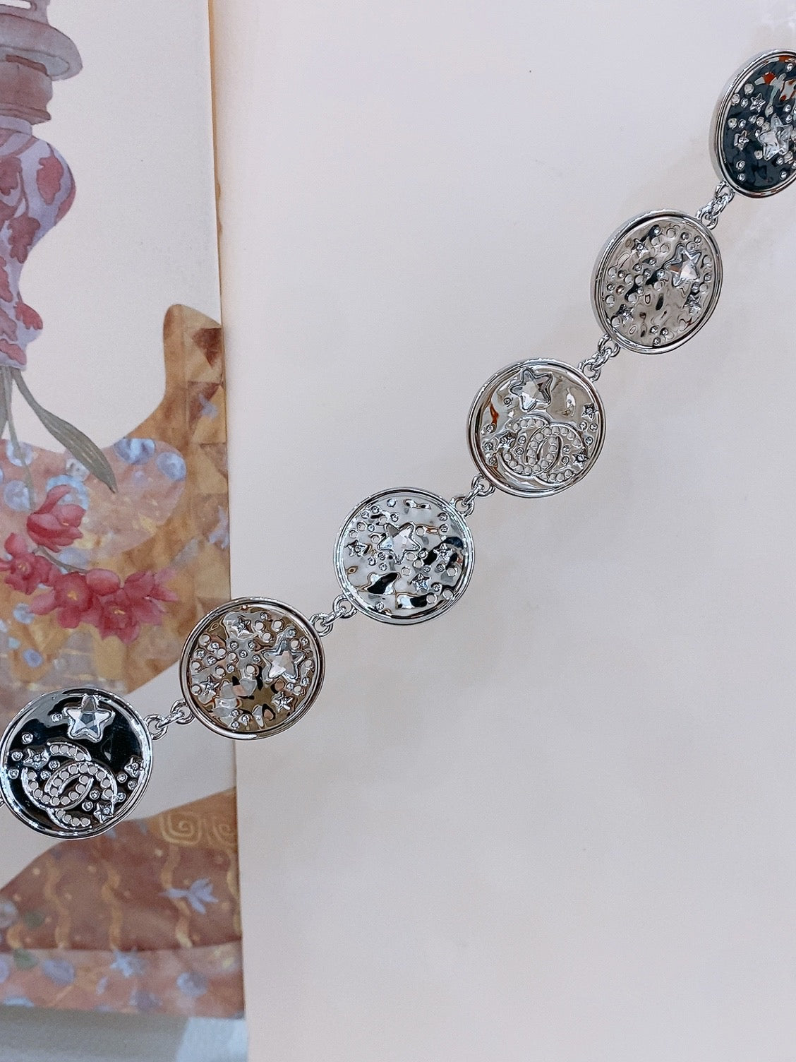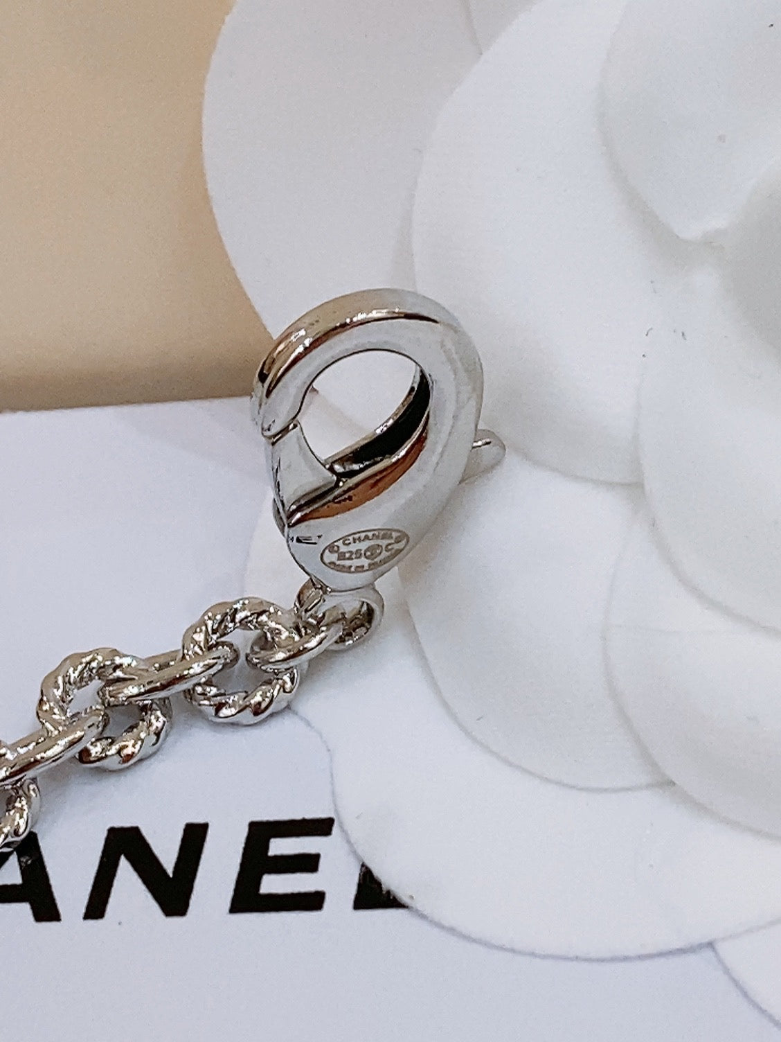 Twisted Chain Belt With Rhinestones And Logo Plate In Silver Tone