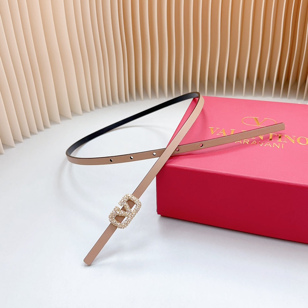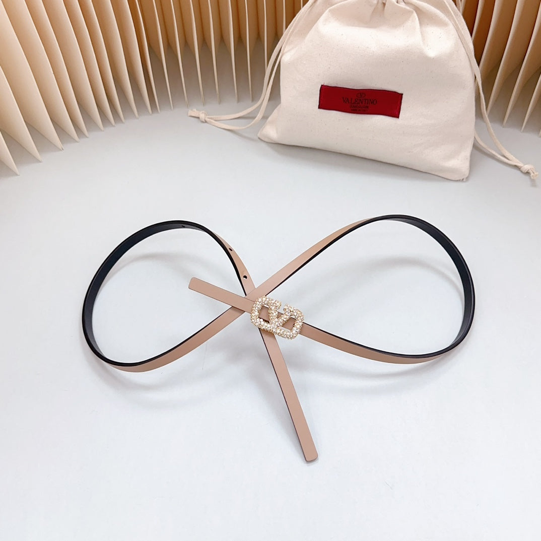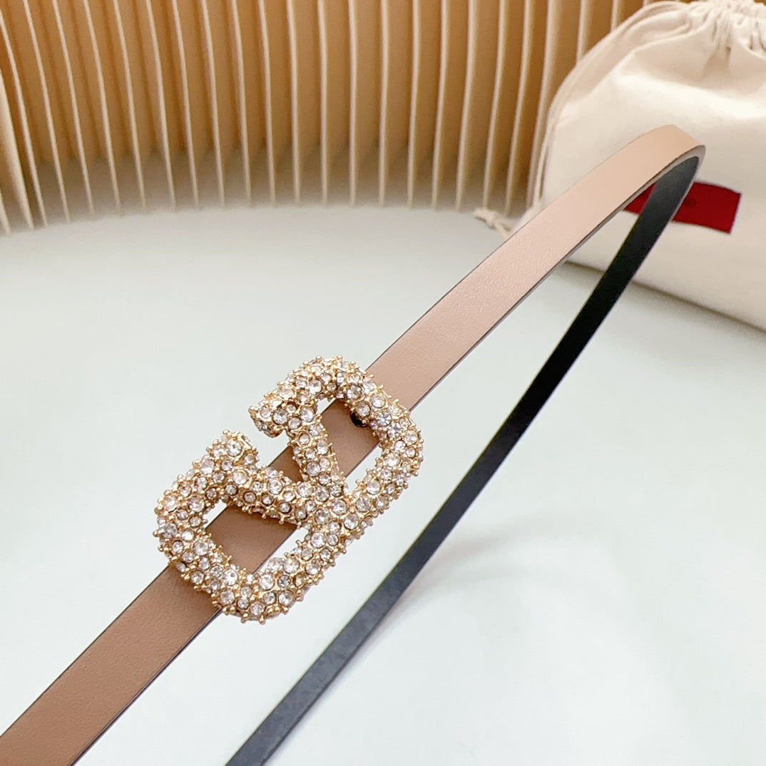 VL Belt 8mm Buckle Gold Diamond Leather Beige Black