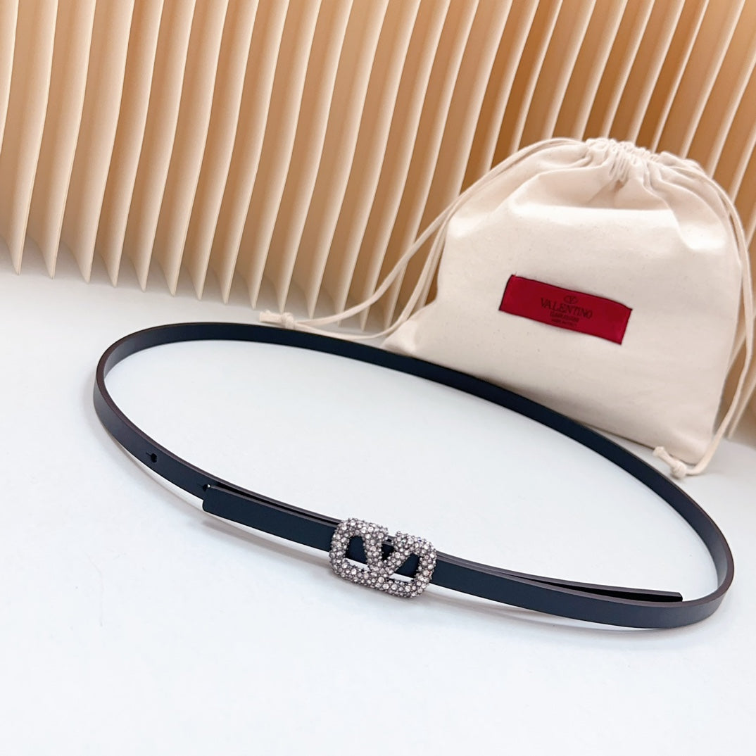 VL Belt 8mm Buckle Silver Diamond Leather Black