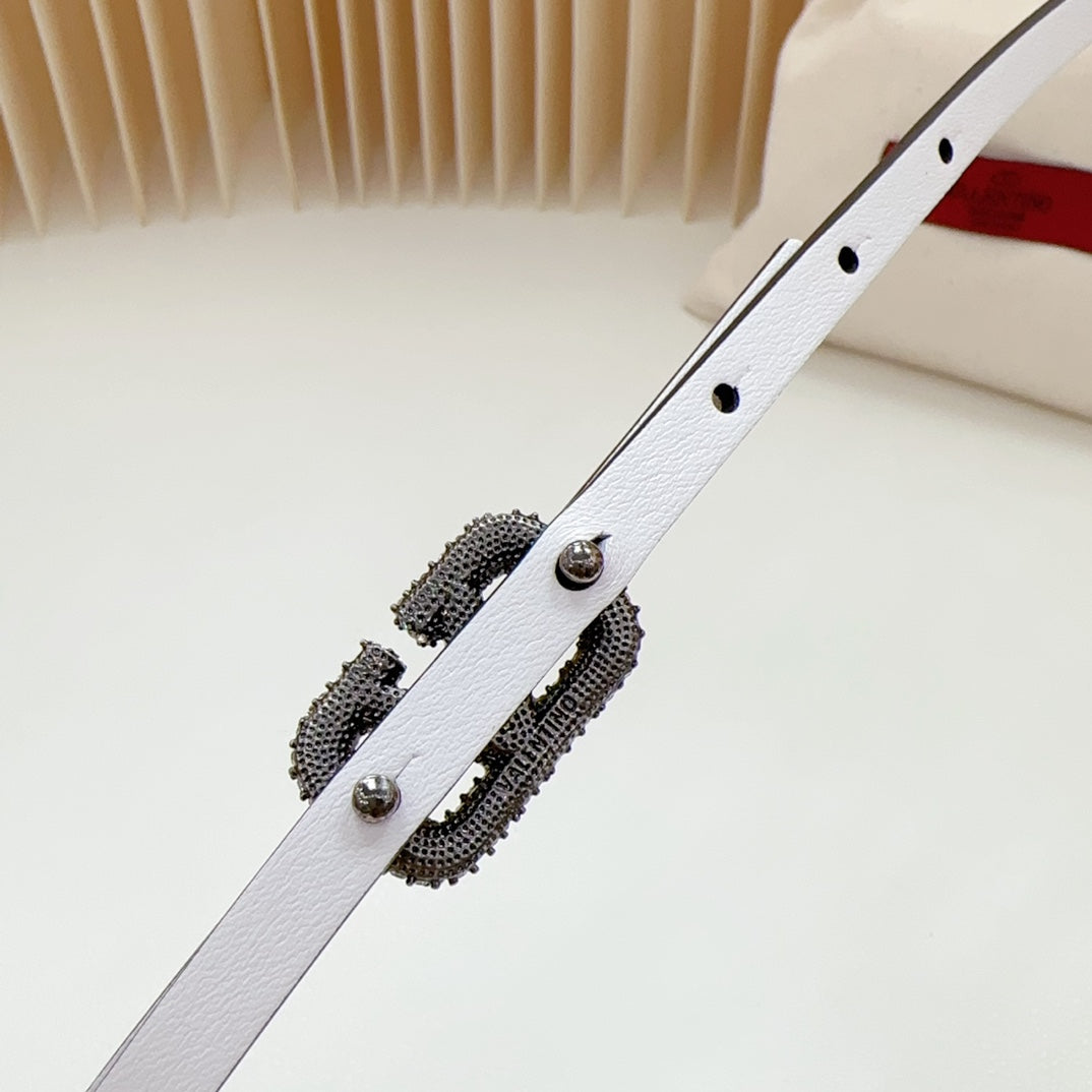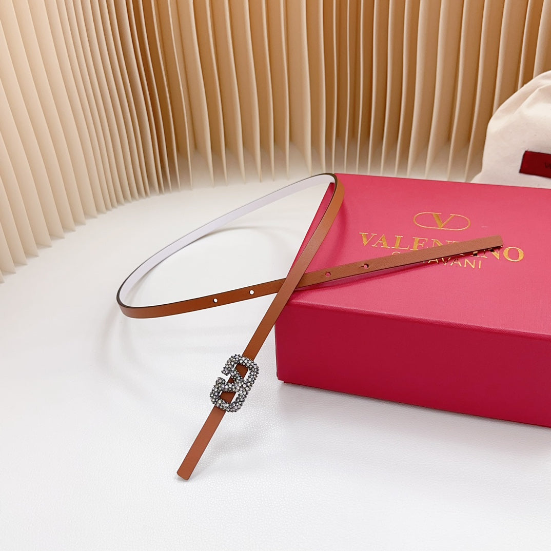VL Belt 8mm Buckle Silver Diamond Leather Tan White